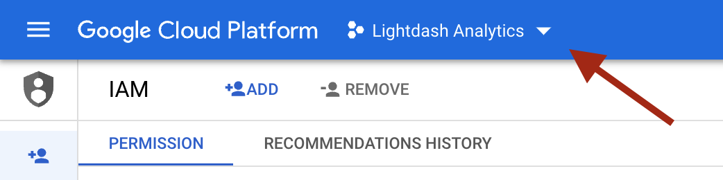 This is project ID from Google Cloud Platform for the data that you want to connect Lightdash to. To find your project ID, head to the BigQuery Cloud console. Once you’re in there, click on the project name in the top bar.