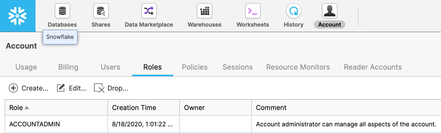 This is the security role that you would like to use when running queries as the specified user. The role must have access to any warehouses, databases, schemas, and tables you want to use. If you’re a Snowflake admin you can list all roles available in the snowflake console: