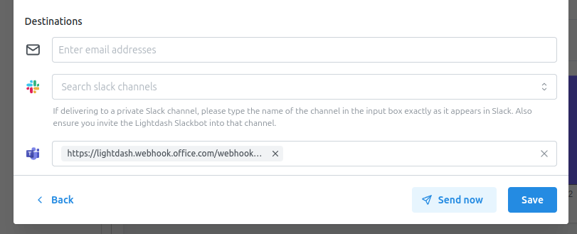 You can send your Lightdash scheduled deliveries directly to Microsoft Teams using incoming webhooks. This allows you to keep your team updated with key metrics and reports, right inside your Teams channels.🔗 How to Create a Webhook in Teams